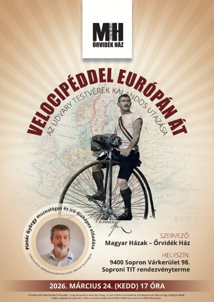 Szeretettel hívjuk és várjuk Önöket az Őrvidék Ház és a Soproni TIT közösen szervezett előadására, mely egy 1889-es, ugyancsak vakmerő vállalkozás részleteibe avatja be a résztvevőket. Egy körmendi testvérpár 17 napos, 1500 km-es utazását ismerhetjük meg Körmend és Párizs között - velocipéden!