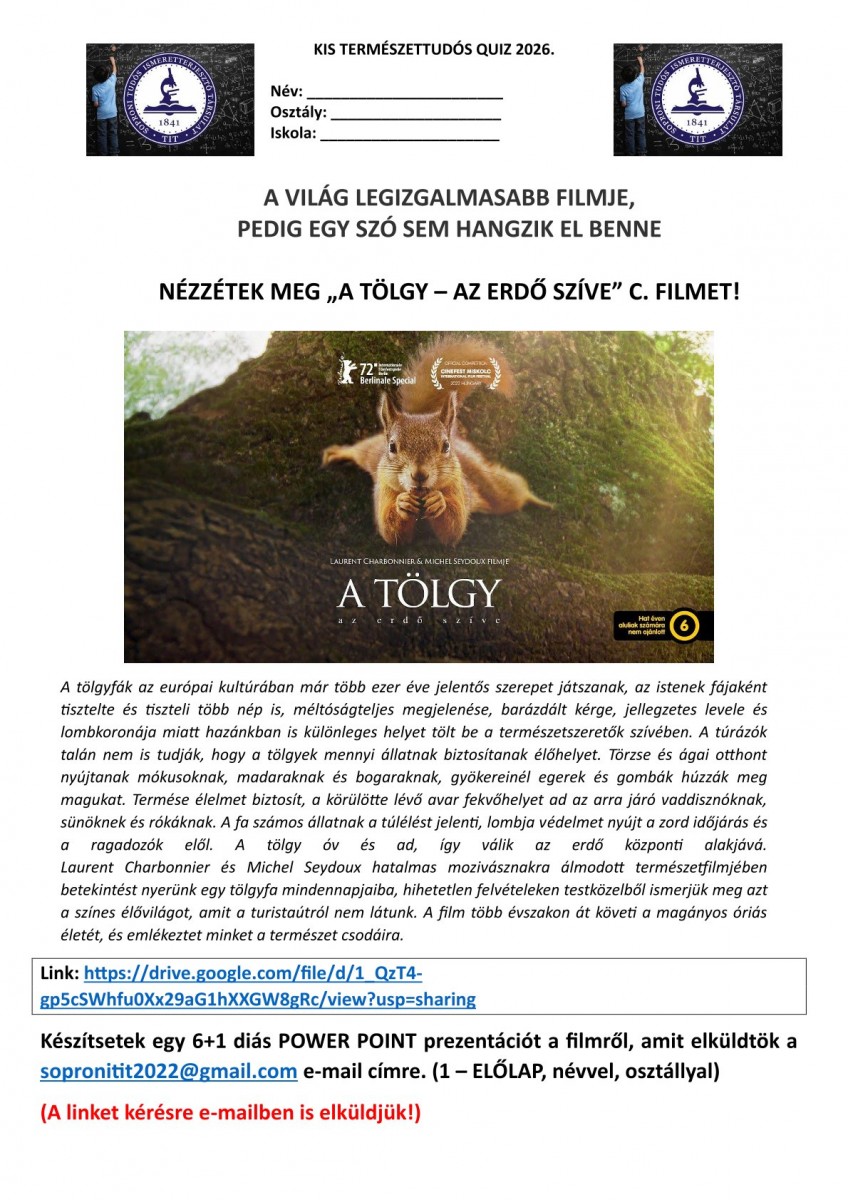 Januárban és februárban hét héten keresztül pénteki napokon egy-egy feladatsort vagy keresztrejtvényt teszünk közzé, esetleg igaz-hamis állításokra keressük a jó válaszokat a természettudományok témakörében!